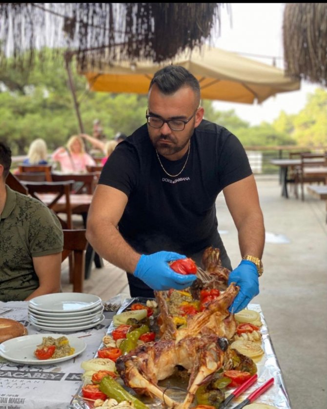 Muğla'nın Fethiye ilçesinde et pişirirken yaptığı şovlarla tanınan Murat Karacabey, yaptığı et pişirme şovları ile bir yandan ilçenin ismini duyuruyor, diğer yandan da ünlüleri ağırlıyor.