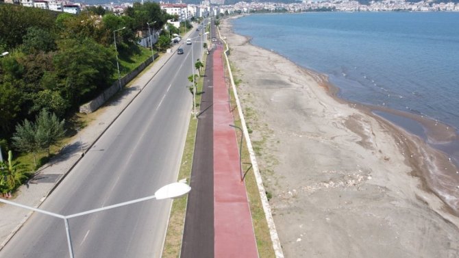 Ordu'nun Ünye ilçesinde yapımına başlanmasının ardından sıcak asfalt çalışmaları sonrası sahil boyunca hizmete sunulacak olan "Yaya ve Bisiklet Yolu...