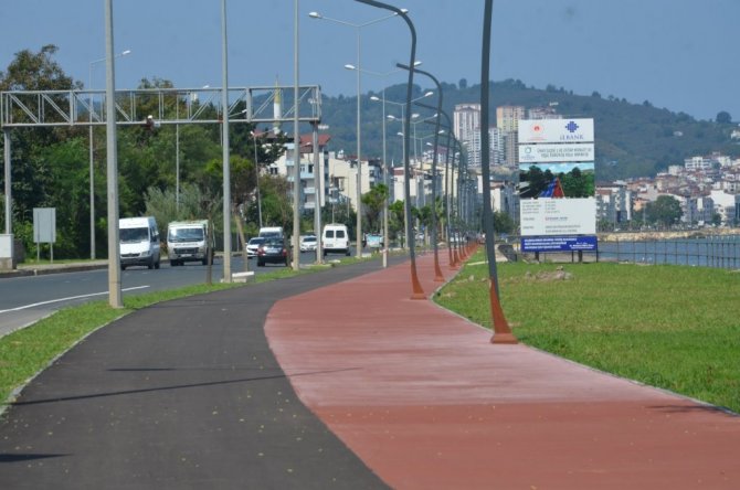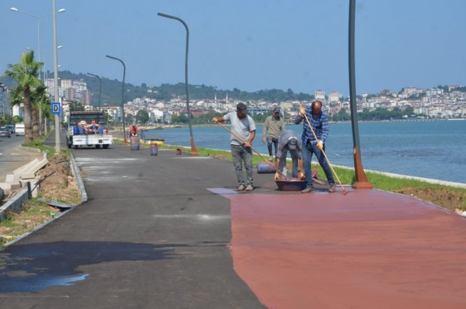 Ordu'nun Ünye ilçesinde yapımına başlanmasının ardından sıcak asfalt çalışmaları sonrası sahil boyunca hizmete sunulacak olan "Yaya ve Bisiklet Yolu Projesi"nde son aşamaya gelinerek boyama işlemleri başladı.