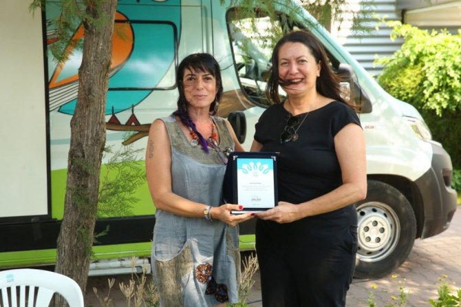 Nilüfer Belediyesi'nin "Yılın Yazarı Gülten Akın Etkinlikleri" kapsamında düzenlenen etkinliğe konuk olan şair Betül Dünder, Minteks çalışanlarıyla...