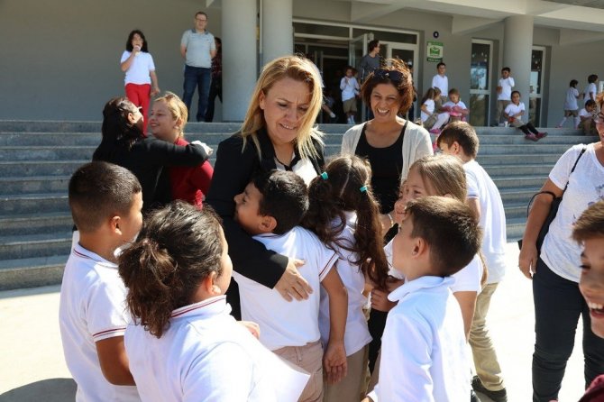 Urla Belediye Başkanı Sibel Uyar, belediyenin bu yıl bin 300 çocuğa çanta, resim çantası, boya, oyun hamurları ve her türlü kırtasiye malzemesinin içerdiği eğitim setlerini verdiğini söyledi. Okul müdürlerinin yanı sıra, ihtiyaç sahiplerinin başvurduğu muhtarlar ve Kadın Aile Müdürlüğüne yapılan başvuruların dikkate alındığını belirten Başkan Uyar, "Bu yıl ayrıca 400 çocuğumuza okul giysisi, 400 çocuğumuza da okul ayakkabısı dağıttık" dedi. Urla Belediyesi bünyesinde yaz döneminde yapılan eğitim programlarının tüm yıla yayıldığını da belirten Başkan Uyar, "Eğitim bizim vazgeçilmez önceliğimiz" diye konuştu. Atatürk İlkokulu Müdürü Nimet Aras ve öğretmenlerin karşıladığı Belediye Başkanı Sibel Uyar, ana sınıfındaki öğrencilerle birlikte şarkılar söyledi, sohbet etti.