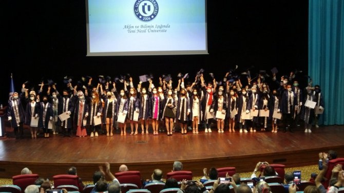 Konuşmaların ardından protokol üyeleri, dereceye giren öğrencilere diplomalarını verdi ve öğrenciler son olarak kep salladı.