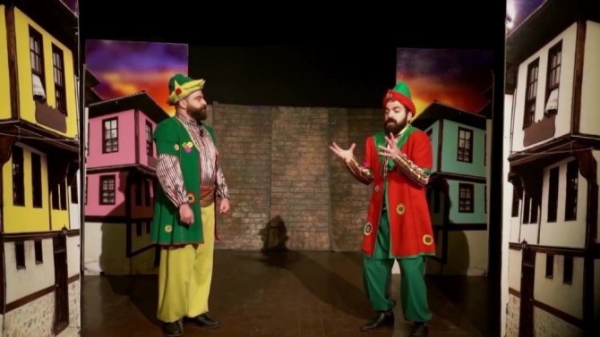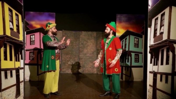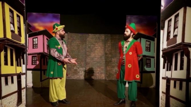 Uşak Şehir Tiyatrosu oyuncuları Hacivat ve Karagöz’ün ‘korona’ atışmasını seyircisiz şekilde sahneleyerek sosyal medyadan yayınladı. Virüsten dolayı boş kalan salonda kameraya çekilen oyun, sosyal medyada paylaşılmasının ardından izleyicilerin beğenisini kazandı.