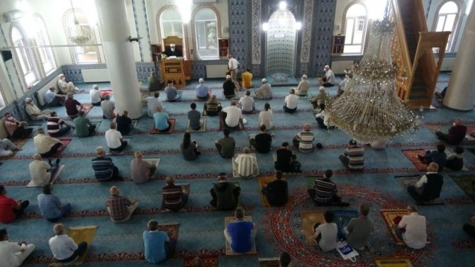 Uşaklı vatandaşlar kurban bayramı namazı için camilere akın etti. Uşak'ta en büyük camilerinden birisi olan Yücetepe Cami'sinde korona virüs tedbirlerine uyularak sosyal mesafeli namaz kılındı.