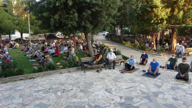 Uşak’ta sosyal mesafeli bayram namazı kılındı