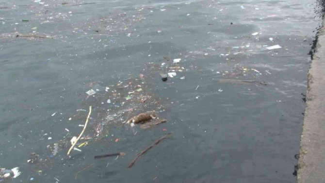 Öte yandan kıyıya vuran çöpler arasında içerisinde plastik atıklar, kullanılmış maskeler ve hayvan ölüsü olduğu görüldü.