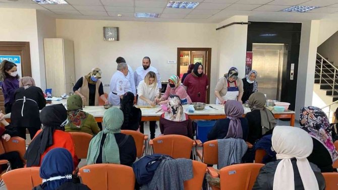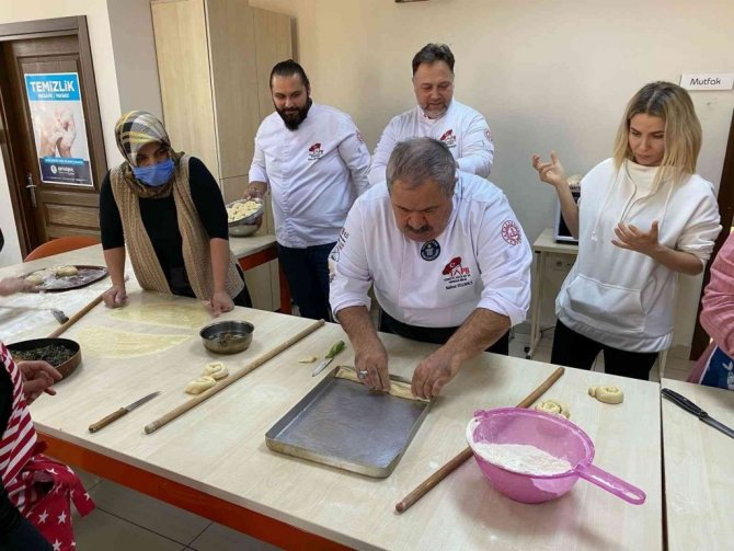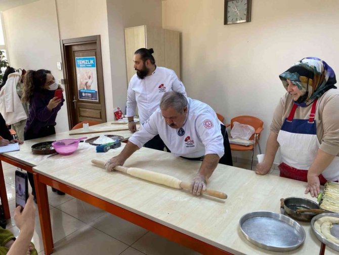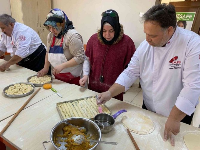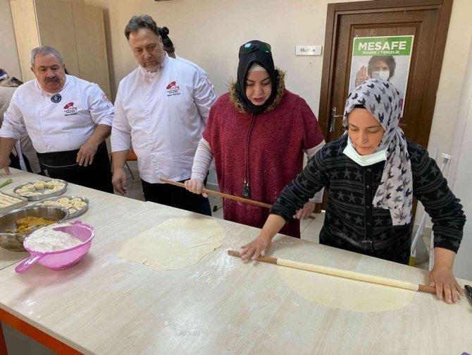 Ülkeye yeni ustaların kazandırılması amacıyla dünyaca ünlü Şef Mahmut Dolmacı, Şef Emre Geyikçi ve Şef Ramazan Tuğluoğlu tarafından kursiyerlere verilen derslerde, baklava ve börek açmanın püf noktaları öğretiliyor