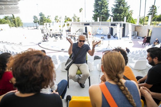 Atatürk Parkı içerisindeki amfi tiyatroda gerçekleştirilen workshopta, tek kişilik oyunların ustası olarak bilinen Genco Erkal, tiyatroyu neden tercih ettiğini anlatırken, çeşitli tiyatro topluluklarında izleyicilerle buluştuğu oyunlar hakkında da bilgi verdi.