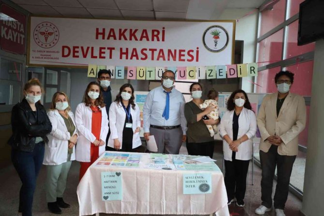 Hakkari Devlet Hastanesinde "1-7 Ekim Emzirme Haftası" dolayısıyla hastanenin giriş katında kurulan stantta ziyaretçileri anne sütü hakkında bilgilendirilirken, vatandaşlara hafta ile ilgili hazırlanan broşürler dağıtıldı. Doktor ve hemşireler annelere, anne sütünün önemi, özellikleri, faydaları ve emzirme süresi hakkında detaylı bilgi veridi. Konuyla ilgili bilgi veren Başhekim Uz. Dr. Uğurcan Kara, hafta kapsamında kurdukları stantta kentteki annelere bilgi vermek için bir araya geldiklerini ifade etti. Dünya Sağlık Örgütü'nün (DSÖ) bebeklerin doğumdan sonra ilk 6 ay sadece anne sütü ile beslenmelerini ve uygun besinlere 6. aydan başlanarak emzirmenin en az iki yaşına kadar sürdürülmesini önerdiğini belirten Kara, salgınlarda da anne sütü ile beslenmenin korunması ve sürdürülmesinin önemli olduğunu söyledi.