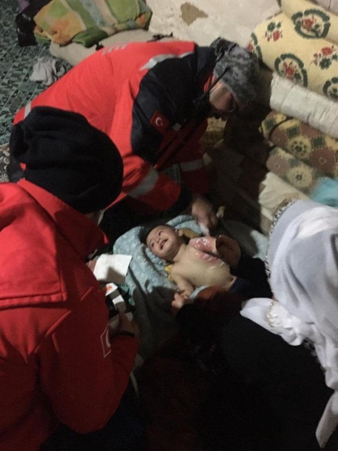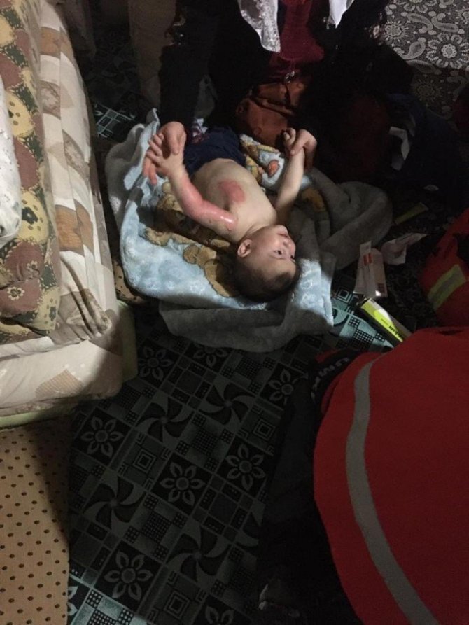 Üzerine sıcak su dökülen bebek, paletli ambulansla hastaneye ulaştırıldı