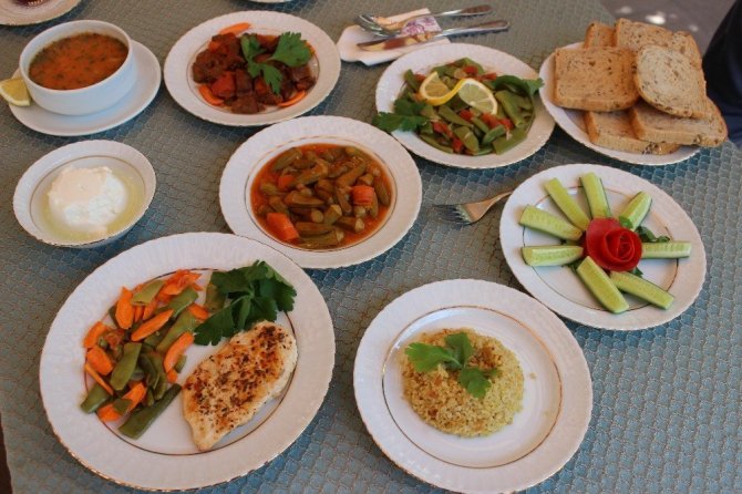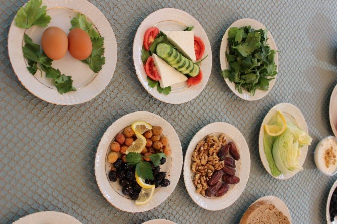 Sağlık Bakanlığı her sene olduğu gibi bu yıl da iftar ve sahur için örnek bir masa kurarken, Halk Sağlığı Genel Müdürlüğü Diyetisyeni Betül Çiçek Ramazan’da doğru beslenmeye dair önerilerde bulundu. Sahura kalkılmaması ya da sahurda sadece su içilmesinin zararlı olduğunu, sahur öğünü ağır yemeklerden oluşursa da gün içerisinde oruç tutanlar üzerinde olumsuz etki oluşturacağını söyleyen Çiçek, “En önemli öğünlerimizden biri sahur. Bizi ertesi gün yaşayacağımız açlığa hazırlaması açısından oldukça önemli. Biz bu sürede yumurta, peynir, zeytin, söğüş sebze, süt, yoğurt, kefir gibi hafif bir kahvaltıyı öneriyoruz. Buna alternatif olarak çorba, salata, tam tahıllı ekmek ve sebze yemeğiyle hazırlanmış hafif bir iftar da olabilir. İftarda özellikle tuzlu besinleri tüketmemeye, ağır ve yağda kızartılmış besinleri tüketmemeye özen gösteriyoruz. Çünkü bu tür besinler ertesi gün için susuzluk, halsizlik gibi birçok istenmeyen sonuçlar doğurabilir. İftardan sonra sahura kadar geçen sürede taze ve kuru meyveler yenilmeli. Bu süre içerisinde sütlü tatlılar da tüketilebilir. Gün içerisinde kaybettiğimiz sıvıyı geri kazanabilmek için süt, yoğurt, soda, bitki çayı içilebilir. Ramazan ayında en çok dikkat etmemiz gereken şey öğünlerde yemekleri iyice çiğneyerek yavaş yavaş yemek. İftardan yaklaşık 1 saat sonra yürüyüş de faydalı olur” dedi.