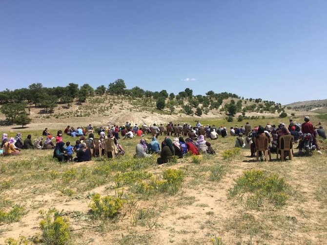 Köy Muhtarı Servet Avcı, "Uzun süredir köyümüzde ve çevre köylerde bir damla bile yağmur yağmıyor. Mahsullerimiz ve ekinlerimiz daha büyümeden tarlada kurumaya başladı. Biz de karınca kararınca köylülerle birlikte para toplayarak bir kurbanlık inek aldık. Bu ineğimizi Allah rızası için kurban kestik. Duamızı ettik ve hep birlikte kesilen kurbanın etiyle yapılan yemeklerimizi köylülere ikram ettik. İnşallah beklediğimiz yağmurlara kavuşuruz" diye konuştu.