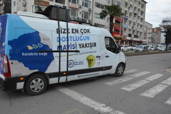Zonguldak'ın Ereğli ilçe Belediyesi artan koronavirüs vakalarına karşı mobil anons aracını devreye alarak mahallelerde vatandaşlar uyarılıyor.
