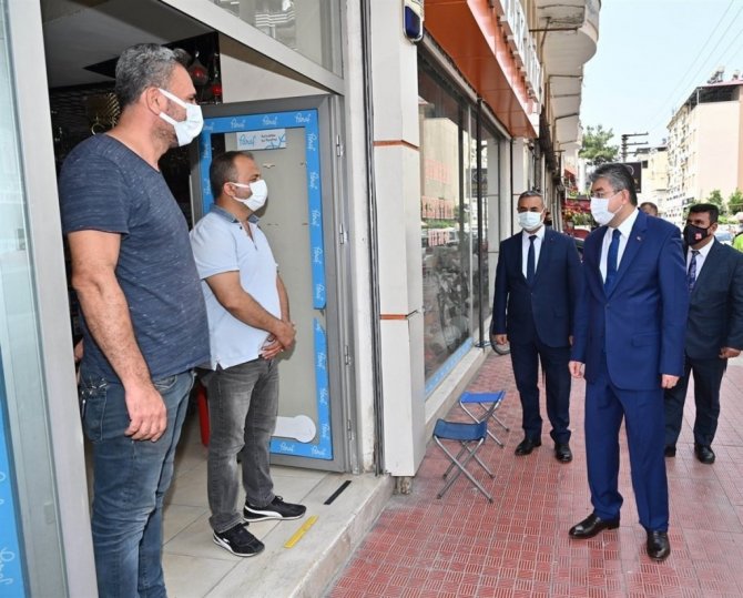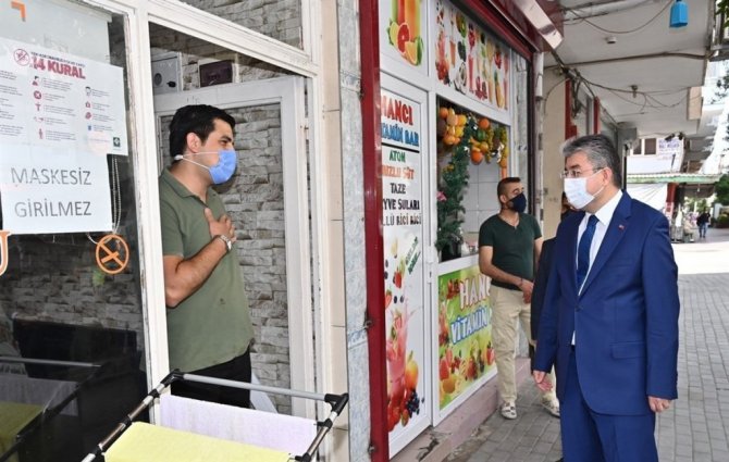 Sağlık Bakanlığı tarafından haftalık olarak açıklanan korona virüs haritasında 100 binde 15,68 vaka sayısı ile Türkiye'de en az vaka oranına sahip olan Osmaniye'de denetimler aralıksız sürüyor. "Dinamik Denetim Modeli" kapsamında Belediye Başkan Yardımcısı Mehmet Hulusi Akkuş, İl Sağlık Müdürü Dr. Hasan Öznavruz ve 112 Acil Çağrı Merkezi Müdürü Guddusi Arık ile beraber Akyar Caddesi'ndeki denetimlere katılan Vali Erdinç Yılmaz, esnaf ve vatandaşlara gösterdikleri özveriden dolayı teşekkür etti.