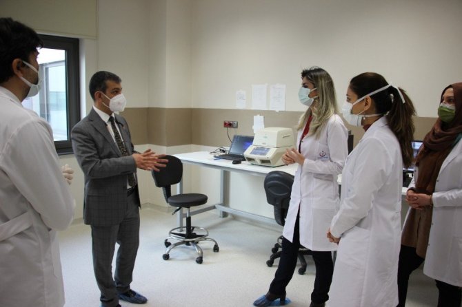 PCR laboratuvarında incelemelerde bulunan Başhekim Prof.Dr.Erol Keleş, kurulan ikinci cihazla tek cihaz bulunmasından kaynaklı sorunların önüne geçilebileceğini söyledi.