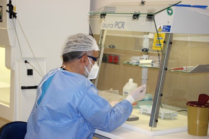 Tüm güvenlik prosedürlerinin uygulandığı laboratuvarda, gelen numuneler önce hasta kabul işleminden geçirilip tasnif edildiği, güvenlikli kabinlerde laboratuvar teknisyenleri tarafından işleme tabi tutularak cihaza yüklenip analiz edildiği kaydedildi. Mikrobiyoloji uzmanları tarafından değerlendirilen analiz sonuçlarının sisteme aktarılarak işlemin tamamlandığı da aktarılırken, laboratuvarı 24 saat esasıyla çalıştığı ifade edildi.