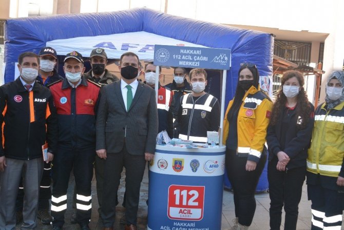 Avrupa Birliği ülkelerinde ve Türkiye'de kutlanan 112 Acil Çağrı Merkezi Farkındalık Günü nedeniyle Hakkari Belediye binası önünde stant açılarak vatandaşlara maske ve bilgi içerikli broşürler dağıtıldı. Hakkari Valisi ve Belediye Başkan Vekili İdris Akbıyık da, standı ziyaret ederek AFAD Müdürü Resul Karadeniz ve 112 Acil Çağrı Merkezi Müdür Vekili Maksut Kaya'dan çalışmalar hakkında bilgi aldı.