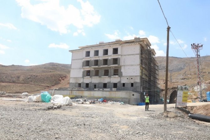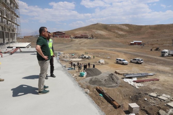 Hakkari Valisi ve Belediye Başkan Vekili İdris Akbıyık, Mergabütan Kayak Merkezi'nde yapımında sona yaklaşılan otel inşaatında denetlemelerde bulunarak ilgililerden bilgi aldı.