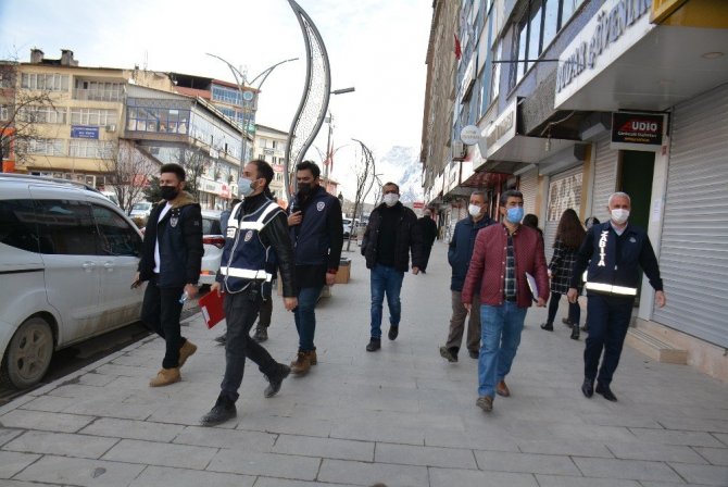 Hakkari'de dinamik denetim modeli kapsamında iş yerleri, cadde, sokak ve meydanlarda temizlik, maske ve mesafe denetimi yapıldı.
