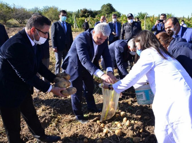 Tarım uygulama alanında gezen Vali Akın, öğretmenler ve öğrencilerin patates hasadına da eşlik etti. Verilen eğitimin öğrencilerin üretime yatkın, nitelikli insan olarak yetiştirilmesine önemli katkılar sağladığını söyleyen Vali Akın, "Eğitim alanındaki gelişmelere ve bu yönde yürütülen çalışmalara büyük önem vermekteyiz. Öğrencilerimize tarım ve hayvancılık alanlarında önemli eğitimler verilmektedir. Geleceğimizin teminatı olan öğrencilerimizin kaliteli bir eğitimle kendilerini geliştirmelerini sağlayacak bütün projeleri destekliyoruz" dedi.