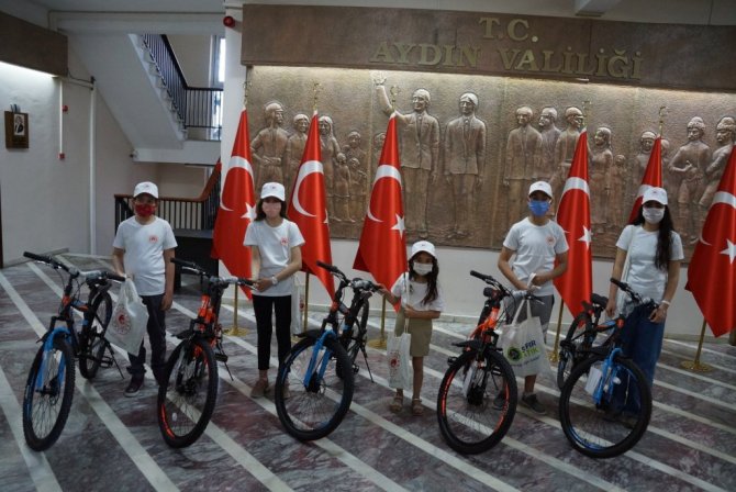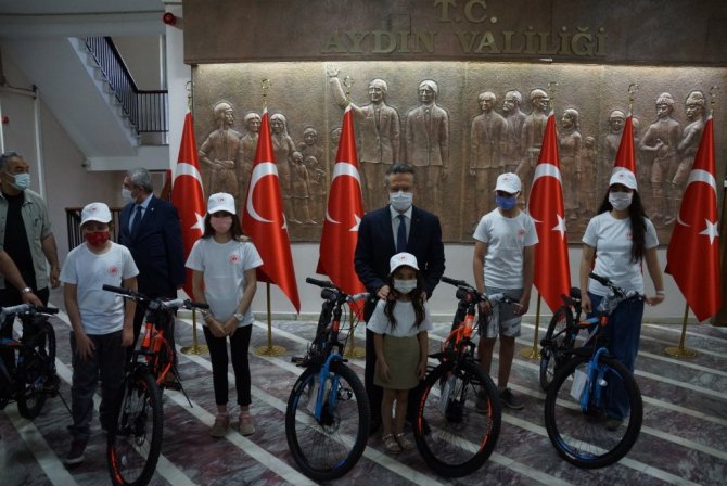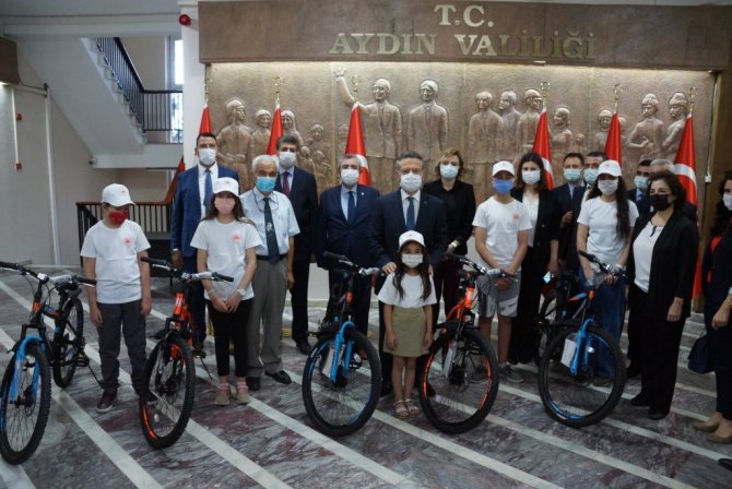 Aydın Valisi Hüseyin Aksoy, 5 Haziran Dünya Çevre günü dolayısıyla sıfır atık projesinde başarılı olan öğrencilere bisiklet hediye edilmesi programında...