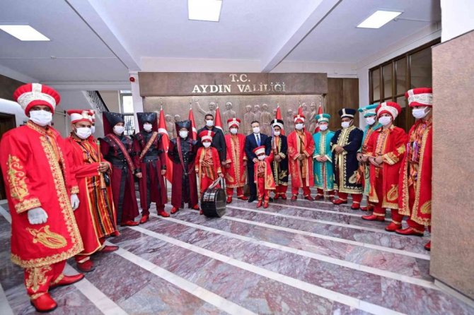 Germencik Ali Şanlı Tarihi Osmanlı Mehteran Takımını ağırlayan Aydın Valisi Hüseyin Aksoy, derneğin küçük üyeleriyle de görüşerek eğitimlerini aksatmamaları gerektiğine dikkat çekti.