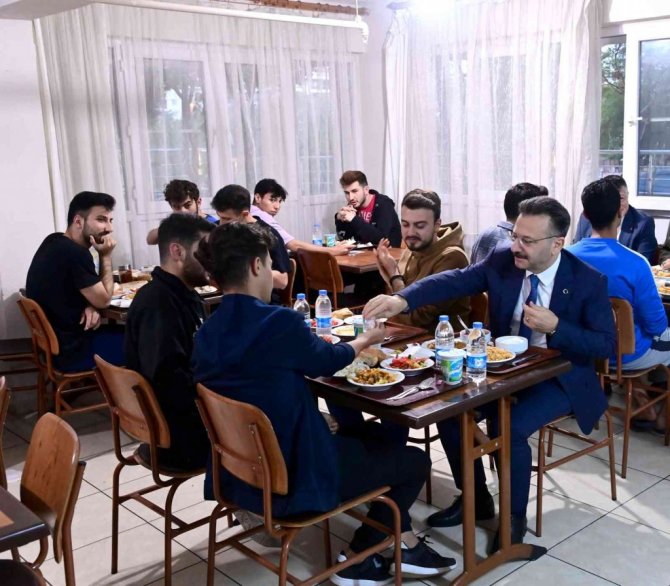 On bir ayın sultanı Ramazan ayının gelmesi ile birlikte Aydın Valisi Hüseyin Aksoy da iftar programlarına devam ediyor. Bu çerçevede üniversite öğrencilerinin misafiri olan Vali Aksoy, Gülçiçek Hatun Yurdu'nda kalan üniversite öğrencileri ile bir araya geldi. İftar yemeğine misafir olan Aksoy, yemeğin ardından üniversiteli gençler ile uzun süre sohbet etti.