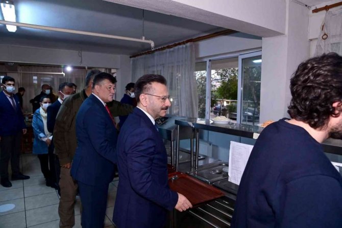 Aydın Valisi Hüseyin Aksoy, Gülçiçek Hatun Yurdu'nda kalan üniversite öğrencilerinin misafiri oldu.