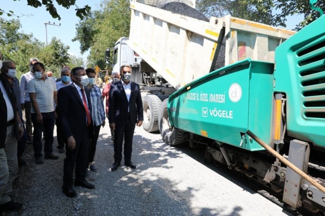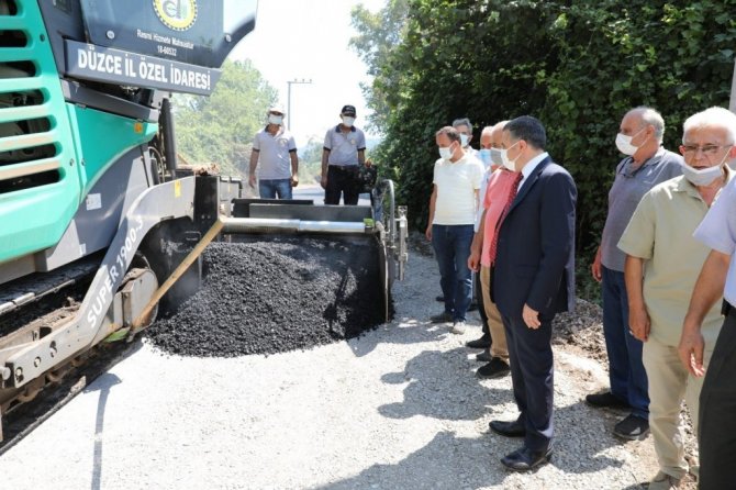 Düzce Valisi Cevdet Atay'ın koordinesinde Düzce İl Özel İdaresi'nin 2021 yılı yatırım programları devam ediyor. Bu kapsamda toplam uzunluğu 2.5 kilometre olan Yığılca'ya bağlı Akçaören-Kocaoğlu köyleri grup yolunda asfalt çalışmaları devam ediyor. Devam eden çalışmaları Düzce Valisi Cevdet Atay ziyaret ederek, çalışmalarda bulunanlara kolaylıklar diledi. Vali Atay, bölge halkına da hayırlı olsun dileklerini iletti. Atay burada yaptığı açıklamada, " 2021 yılı yatırım programı kapsamında Düzce il özel idaresi bünyesinde 26 km beton yol, 52 km BSK asfalt yol yapımı programlanmış olup, günümüz itibariyle 13 km beton yolun yapım çalışması ile 18 km BSK asfalt yolun yapım çalışması tamamlanmıştır. Yol medeniyettir felsefesiyle çalışmalarımızı aralıksız sürdürüyoruz. Vatandaşlarımıza hayırlı olmasını temenni ediyoruz." dedi.