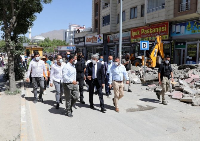 Van Valisi ve Büyükşehir Belediye Başkan Vekili Mehmet Emin Bilmez, Erek Caddesinde başlayan yenileme çalışmalarını yerinde inceledi.