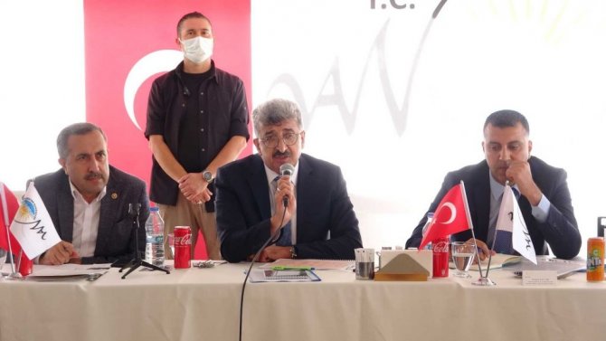 Mahallelerin sorunlarını tespit etmek ve çözüm sunmak amacıyla Van Büyükşehir Belediyesince başlatılan muhtar buluşmaları devam ediyor. Bu kapsamda Fidanlık Parkı'nda düzenlenen toplantıda, Muradiye'deki mahalle muhtarlarıyla bir araya gelen Vali ve Büyükşehir Belediye Başkan Vekili Mehmet Emin Bilmez, 2020 yılında düzenlemeyi planladıkları toplantıları pandemi nedeniyle yapamadıklarını anımsattı. Vali Bilmez, "İnşallah pandemi tamamen geride kalır. Pandemide durumumuz kötü değil ama aşıda istenilen düzeyde değiliz. Aşı konusunda da sizden bir duyarlılık bekliyoruz. Geçen hafta Muradiye'deydik. İlçe belediyesi ve kaymakamlıkla beraber yaptığımız bir tekstil atölyesi var. İnşallah o da bitecek ve 200 insanımız orada iş bulacak. Onun da ihalesi hızlı bir şekilde yürüyor" dedi.