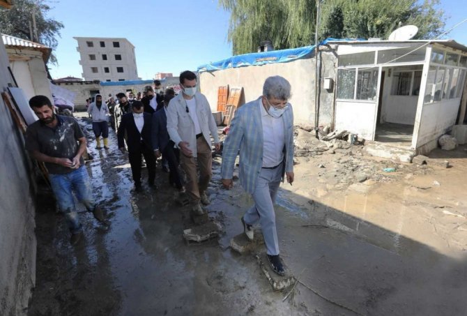 Van Valisi ve Büyükşehir Belediyesi Başkan Vekili Mehmet Emin Bilmez, sel ve su taşkınlarının yaşandığı Tuşba ilçesinde incelemelerde bulunarak vatandaşlarla bir araya geldi.