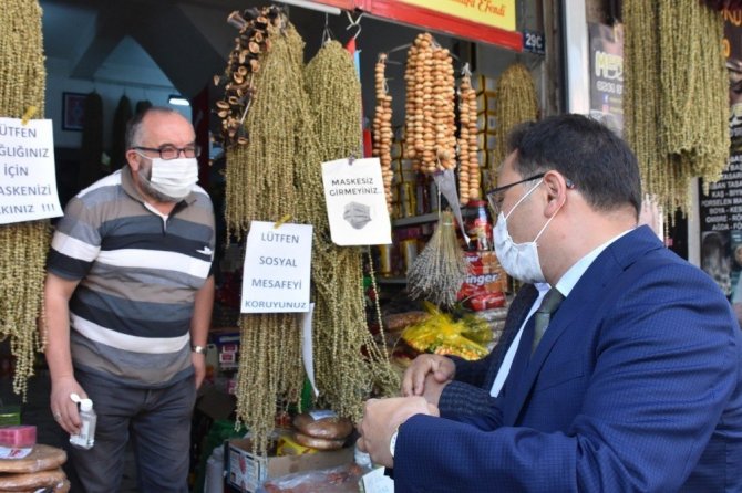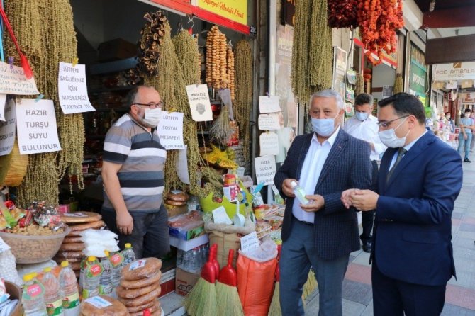 Vali Gökmen Çiçek, Afyonkarahisar Belediye Başkanı Mehmet Zeybek ile birlikte kent merkezinde korona virüs denetimi yaptı. Denetimlerde esnaf ve vatandaşları özellikle maske ve sosyal mesafe konusunda uyaran Vali Çiçek, maske takılmaması durumunda virüsün yayılma hızına dikkat çekti. Denetimler sonrası gazetecilerin soruları üzerine açıklamalarda da bulunan Vali Çiçek, kentte virüsle mücadelede bin 200 görevlinin sahada sürekli denetim yaptığını kaydederek, “İl Salgın Denetim Merkezinde bin 200 kişi, mahalle denetim ekiplerinde 845 kişiyle arazide arkadaşlar denetimde. Görevlilerimiz hem karantinada olanların karantina kurallarına uymalarını sağlamaya hem de diğer kurallara uyulup uyulmadığını denetliyor. Kurallar ihmal edildiğinde, bir karantina hastasının dışarı çıktığında olabilecekleri Allah korusun biliyoruz. Onların kontrollerini yapıyor” diye konuştu.
