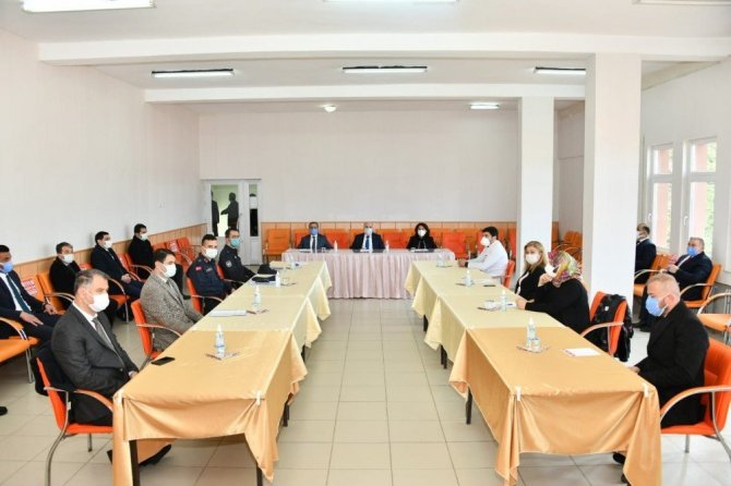 Ladik'te kamu kurumlarınca yürütülen hizmetler, korona virüsü vaka sayılarındaki artışın sebepleri ve alınan tedbirlerin görüşüldüğü değerlendirme toplantısı, Samsun Valisi Doç. Dr. Zülkif Dağlı'nın başkanlığında, Ladik Kaymakamı Adem Eser, Ladik Belediye Başkanı Nurhan Yapıcı Özel ve ilçe müdürlerinin katılımıyla gerçekleştirildi.