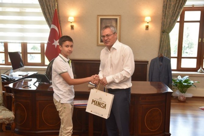 Manisa’dan 16 bin öğrencinin katıldığı LGS sınavında bütün soruları doğru cevaplayarak 500 puan alan Tahsin Tanrıkulu, Efe Dalgıç, Çağdaş Egemen Aktaş, Nurullah Altın Kaya, Yavuz Pehlivan, Utku Babaç, Ali Kaan Destici, İclal Tekin, Mert Kırmacı ve Ahmet Enç İl Milli Eğitim Müdürü İsmail Çetin ve öğretmenleri ile birlikte Vali Ahmet Deniz’i ziyaret etti.