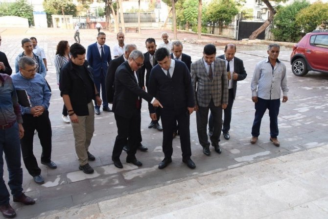 Manisa Valisi Ahmet Deniz, Şehitler Ortaokulu ek bina inşaatında incelemelerde bulundu.