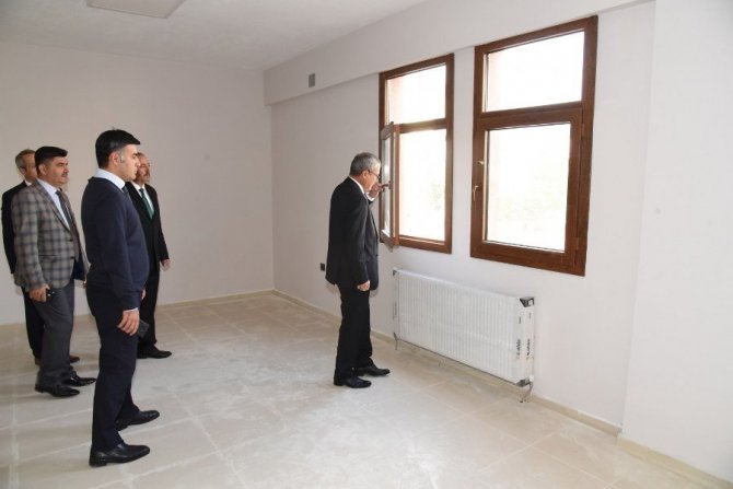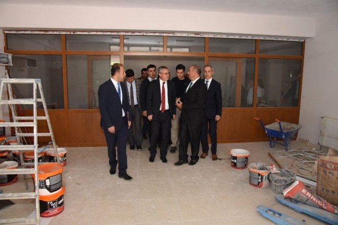 Vali Ahmet Deniz, 16 derslikli Şehitler Ortaokulu ek bina inşaatında incelemelerde bulunarak, Milli Eğitim Müdür Vekili Abdullah Ölmez ve yetkililerden bilgi aldı.