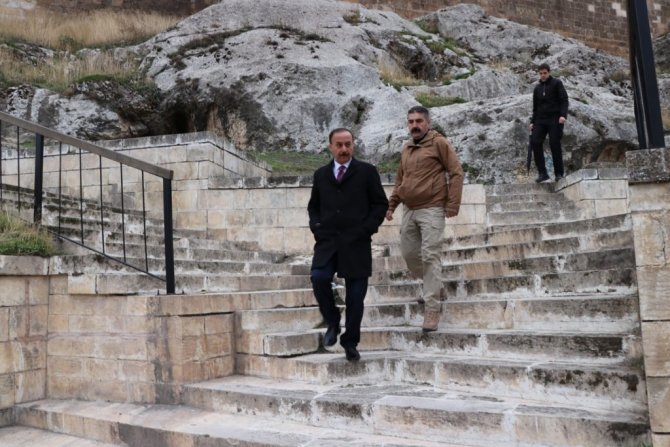 Şanlıurfa'nın simgesi Balıklıgöl, Urfa Kalesi ve Hz. İbrahim Peygamberin doğduğu mağaranın yer aldığı tarihi turistik alanlarda yapılacak planlamalar devam ederken, Vali Abdullah Erin bölgede incelemelerde bulundu.