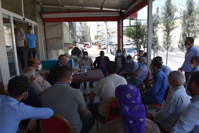 Korona virüs salgın tedbirleri nedeniyle bir süredir ertelediği vatandaşla buluşma toplantılarına, salgın tedbirlerine riayet ederek yeniden başlayan Şanlıurfa Valisi Abdullah Erin, Eyyübiye ilçesine bağlı Topdağı Mahallesi'nde halkla bir araya geldi. Mahalledeki bir kahvehaneyi ziyaret ederek vatandaşlarla buluşan Vali Erin, sorun, talep ve beklentileri dinleyerek notlar aldı. Vali Erin'in mahallelerine geldiğini duyan vatandaşlar da kısa sürede kahvehanede toplanarak sıkıntılarını anlatma fırsatı buldu.