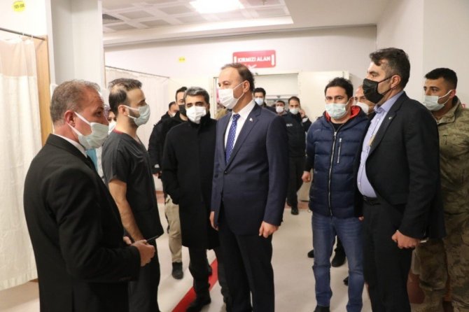 Vali Erin'e hastane ziyaretinde, Vali Yardımcısı İsmail Çetinkaya, İl Emniyet Müdürü Selçuk Doğuş, ve İl Jandarma Komutanı Tuğgeneral Metin Düz de eşlik etti.