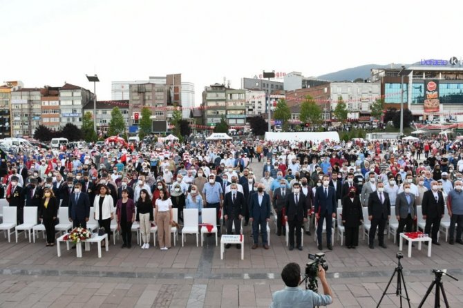 Programda konuşan Karabük Valisi Fuat Gürel, "15 Temmuz gecesi umutlarımıza, geleceğimize hayallerimize pranga vurmak istemiş. Milletimizin kaynakları ile alınan her türlü silahımız kahraman Türk ordusunun şerefli üniformasını hak etmeyen asker görünümlü hainler tarafından halkımıza doğrultulmuştur. Hamdolsun ki Cenab-ı Allah'ın lütfu, Cumhurbaşkanımızın cesareti ve üstün liderliği ile harekete geçen yüce milletimiz tankın, uçağın, helikopterin ve tüfeğin karşısına sadece ve sadece imanı, inancı ve yüreği ile dikilmiş. FETÖ Terör Örgütü tarafından gerçekleştirilmek istenen hain darbe girişimi aziz milletimizin ölüme meydan okuyan kararlılığıyla engellenmiş. Milletimiz bu karanlık gecenin sabahını aydınlığa çevirmiştir" ifadelerini kullandı.