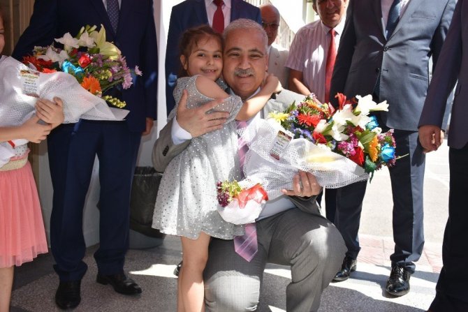 Manisa Valisi Mustafa Hakan Güvençer, Gazi İlkokulunda düzenlenen törenle öğrencilere karnelerini verdi.