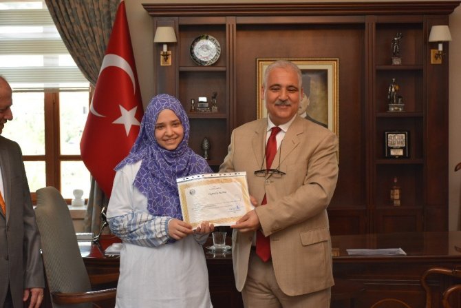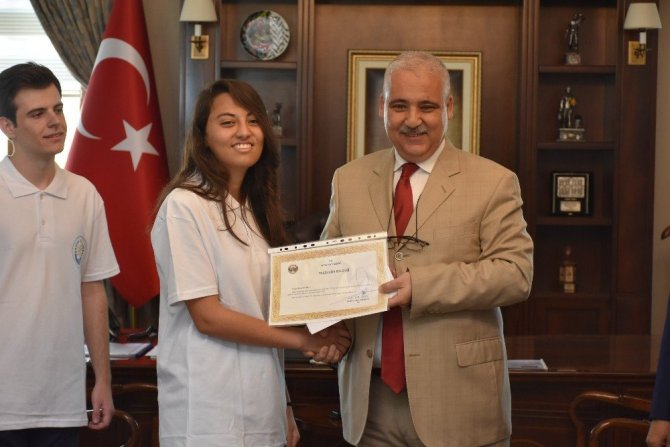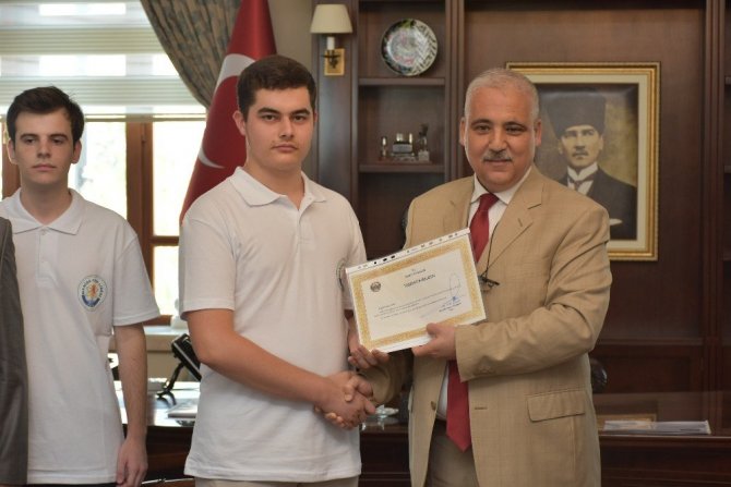Konuşmaların ardından Vali Güvençer YKS Türkiye sıralamasına göre 26. Tunahan Abalı, 28. İlksen Mumcu, 101. Leyla Biçer, 169. Furkan Sakız, 171. Mustafa Atay, 262. Uğur Kurt, 311. Başak Karagöl, 453. Nurahsen Gürhan, 458. Ömer Yariçi, 460. Esra Kurt, 548. Ahmet Bozyel, 827. Gizem İbiş’in teşekkür belgelerini ve hediyelerini verdi.