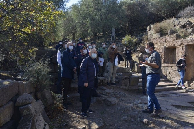 İncelemenin ardından değerlendirmede bulunan Vali Karadeniz, yapılan çalışmaların önemine vurgu yaparak, antik kentin turizm altyapısının iyileştirilmesi ve bilinirliğinin arttırılması, antik yapıların korunması, sergilenmesi ve tanıtılması amacıyla yapılması gereken konular hakkında fikir alışverişinde bulundu.