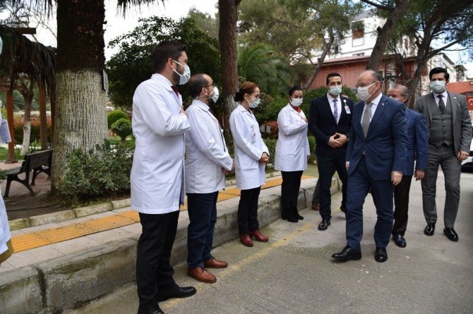 Manisa Ruh Sağlığı ve Hastalıkları Hastanesi Başhekimi Uzm. Dr. Cengiz Cengisiz ve hastanede görev yapan doktorlar tarafından karşılanan Vali Karadeniz'e ziyarette İl Sağlık Müdürü Necip Yemenici de eşlik etti.