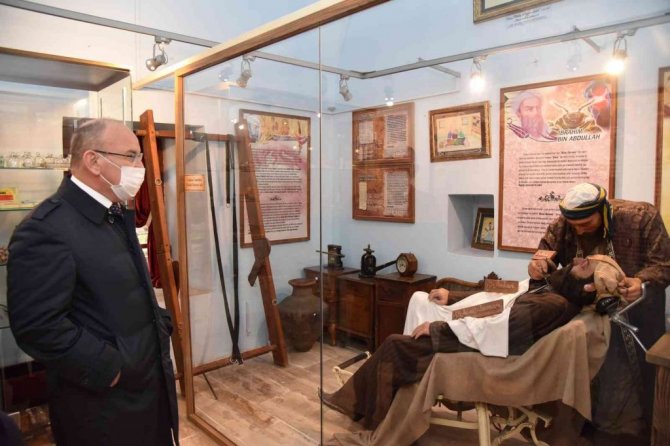 Vali Yaşar Karadeniz, ilk olarak Manisa'da 500 yıl darüşşifa olarak kullanılan ve 8 yıldır da Manisa Celal Bayar Üniversitesi bünyesinde Tıp Tarihi Müzesi olarak hizmet veren Ayşe Hafsa Sultan Tıp Tarihi Müzesini ziyaret etti. Türkiye'deki 10 tıp tarihi müzesinden biri olan, geçmişinde şifahane olarak kullanılan 3 yapıdan biri olan ve geçmişten günümüze tıp tarihinin yolculuğunun anlatıldığı müzede incelemelerde bulunan Vali Karadeniz, yetkililerden bilgi aldı.