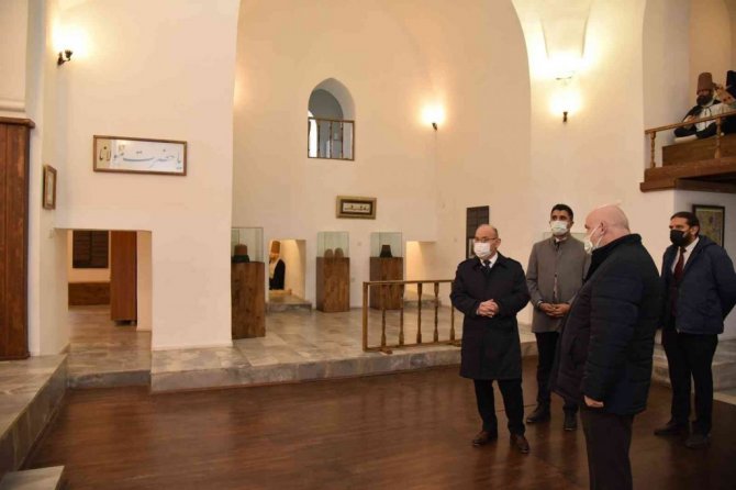 Manisa Valisi Yaşar Karadeniz, Ayşe Hafsa Sultan Tıp Tarihi Müzesi ve Mevlevihane'yi ziyaret etti, Ulu Cami de devam eden restorasyon çalışmalarını inceledi.