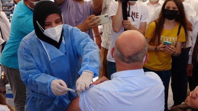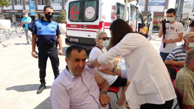 Ordu İl Sağlık Müdürlüğü tarafından Ceren Özdemir Meydanı'nda kurulan aşı stantlarında vatandaşlar randevu almadan aşılarını olabiliyor. Ordu Valisi Tuncay Sonel, Altınordu Kaymakamı Erhan Karahan ve İl Sağlık Müdürü Dr. Mustafa Kasapoğlu da kurulan alanı ziyaret ederek, aşı olmak için gelen vatandaşlar ile bir araya geldi. Vali Sonel, aşı yaptıran vatandaşlara teşekkür etti. Virüsle mücadelede herkesin aşı yaptırması gerektiğine değinen Vali Sonel, "Cumhurbaşkanımız Recep Tayyip Erdoğan'dan tüm bakanlıklarımıza kadar, sağlık teşkilatımızdan güvenlik güçlerimize kadar toplumumuzun tüm birimleri ile bu konuda bir uğraş var. Ordu'nun 19 ilçesinde tüm Ordu ailesi olarak biz istiyoruz ki vakalarda düşme olsun, azalsın ve hiç olmasın. Bu konuda da tüm arkadaşlarımız ile beraber emek veriyoruz. Bizi izleyen yöre insanlarımız ve gençlerimizden aşılarını olmasını istiyoruz" dedi.