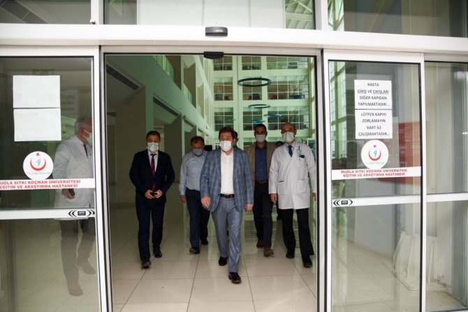 Menteşe Devlet Hastanesi'nin ardından Muğla Sıtkı Koçman Üniversitesi Eğitim ve Araştırma Hastanesini ziyaret eden Vali Orhan Tavlı, aşı uygulamaları ve yürütülen çalışmalar hakkında bilgiler aldı.