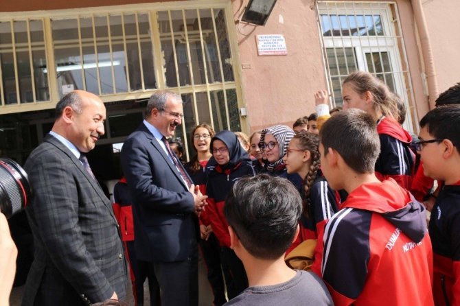 Vali Toraman’nın Dumlupınar Ortaokulu’nu ziyaretinde İl Milli Eğitim Müdürü Hasan Başyiğit ve Temel Eğitim Şube Müdürü İbrahim Aybek de yer aldı.